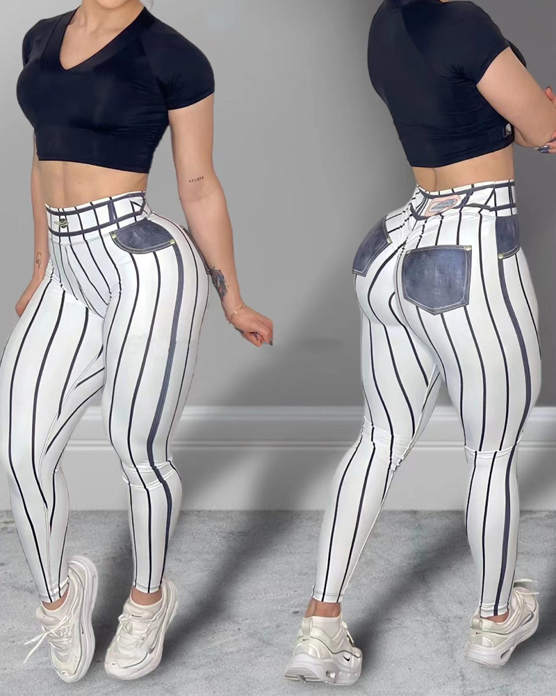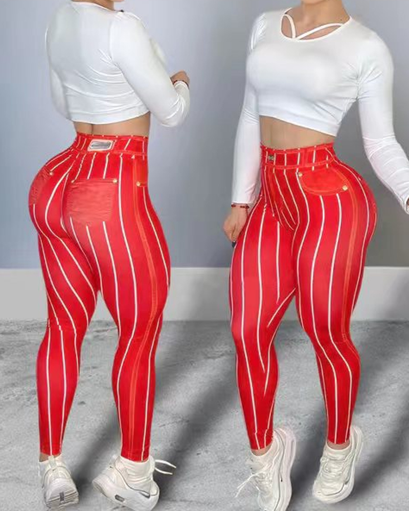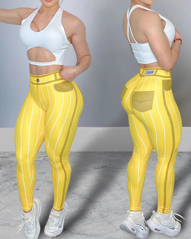 Faux Denim Line Print Yoga Pants