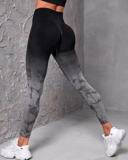Gradient Tie-Dye Yoga Pants Seamless Women's Running Sports Pants High Waist Buttocks Gym Clothes Elastic Leggings Spot